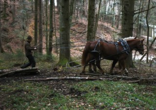 Den Einsatz von schwerem Gerät und dessen verursachten Schaden will keiner sehen, und schon gar nicht in einem Naherholungsgebiet, welche wir Menschen besonders als Ausgleich zur bereits zerstörten Umgebung und überhöhten Lärm- und Stresspegels besuchen. Nichts Schöneres als, wenn hier die Natur scheinbar noch intakt erscheint und Waldwirtschaft in aller Ruhe und Schadenminimiert durch Pferdekraft erfolgt.